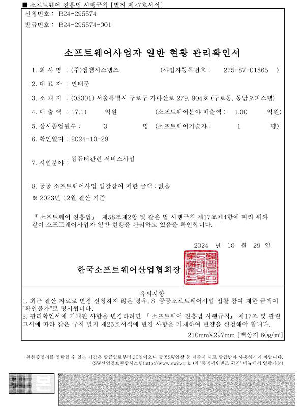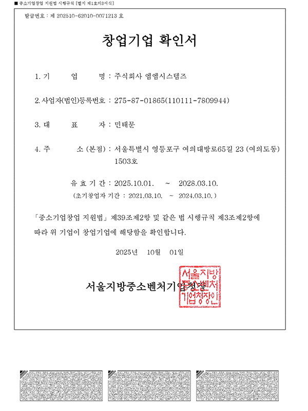 | 회사명 | ㈜엠엠시스템즈 MMSystems Co., Ltd. | 대표자 | 민태문 |